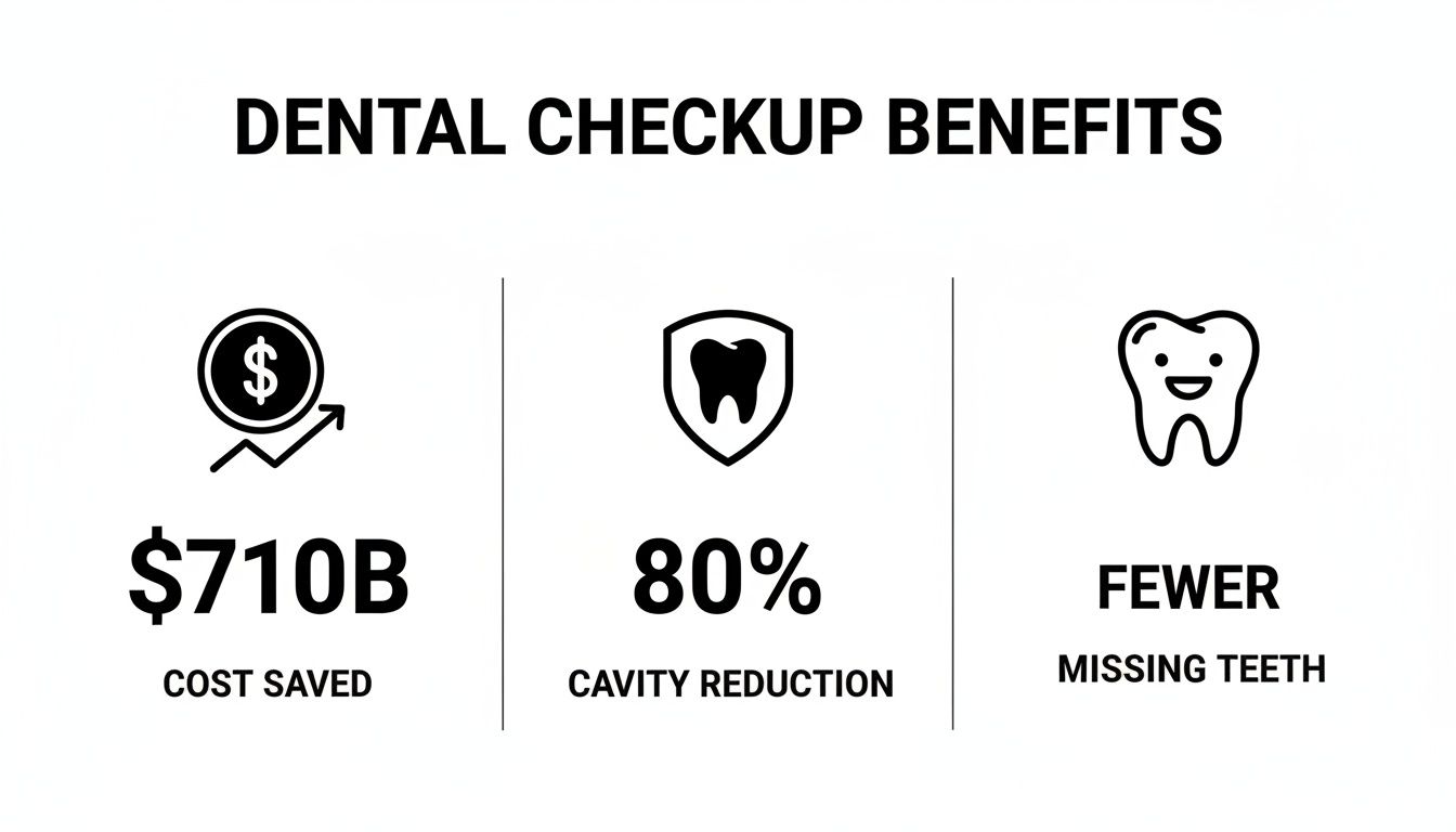 Regular dental checkups deliver massive savings by preventing the need for costly and complex treatments down the road. It's not just a hunch; the numbers are staggering. In 2019, the worldwide economic impact of oral conditions hit a massive $710 billion.